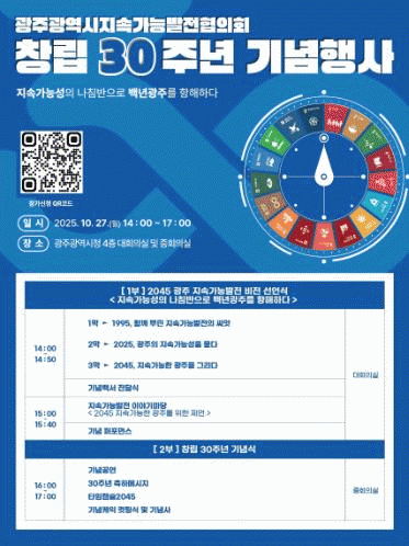 ±¤ÁÖÁö¼Ó°¡´É¹ßÀüÇùÀÇȸ´Â Áö³ 1995³â ¡®Çª¸¥±¤ÁÖ21ÇùÀÇȸ¡¯·Î Ãâ¹üÇÑ ÀÌ·¡ 30³â°£ ÇàÁ¤¡¤»çȸ¡¤½Ã¹Î¡¤±â¾÷ µîÀÌ Âü¿©ÇÏ´Â Áö¿ª ´ëÇ¥ ¹Î¡¤°üÇùÄ¡(°Å¹ö³Í½º) Á¶Á÷À¸·Î ÀÚ¸®¸Å±èÇϸç Áö¼Ó°¡´É¹ßÀü °¡Ä¡ ½ÇÇö¿¡ ±â¿©ÇؿԴÙ.