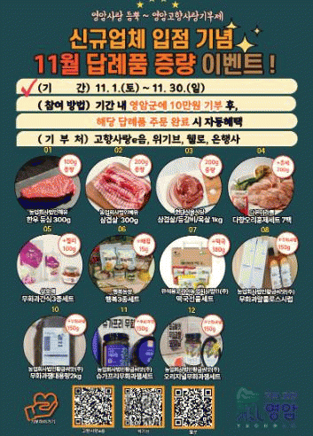 ÀÌ À̺¥Æ®¿¡¼´Â µî½É, »ï°ã»ì, ÈÆÁ¦¿À¸® µî À°·ù Á¦Ç°ºÎÅÍ °ï¾àÁ©¸®, ¹èĨ, ¹«È°ú °¡°ø½Äǰ, ¶±±¹ ¼±¹°¼¼Æ®±îÁö ´Ù¾çÇÑ Ç°¸ñÀÇ Áõ·® ÇýÅÃÀ» Á¦°øÇÑ´Ù.