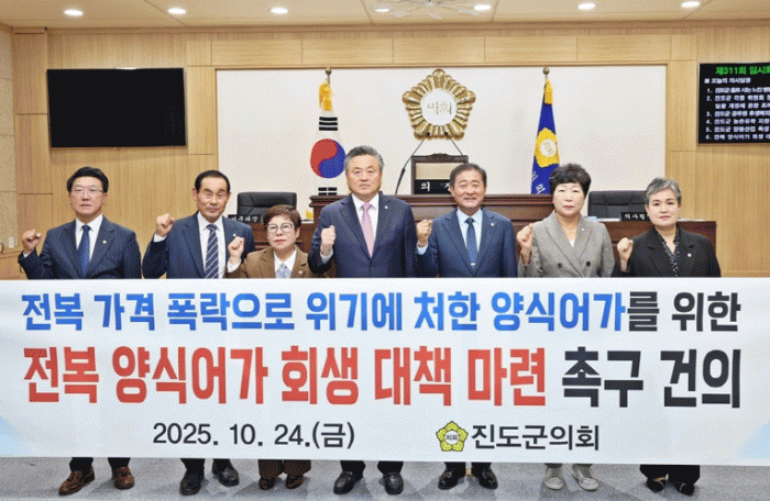 ¹Ú±Ý·Ê Áøµµ±ºÀÇȸÀÇÀåÀº ¡°Àüº¹ »ê¾÷Àº Áøµµ ¾î¾÷ÀÇ Áß½ÉÃàÀÌÀÚ Áö¿ª °æÁ¦ÀÇ ÇÙ½É ±â¹ÝÀ¸·Î ´Ü¼øÇÑ Áö¿ª ¹®Á¦°¡ ¾Æ´Ñ ¾î¾÷ »ýÅ Àü¹ÝÀÇ ºØ±«·Î À̾îÁú ¼ö ÀÖ´Ù¡±¶ó¸ç, ¡°Á¤ºÎ°¡ ÇöÀåÀÇ ¸ñ¼Ò¸®¿¡ ±Í ±â¿ï¿© ½ÇÈ¿¼º ÀÖ´Â Áö¿ø ´ëÃ¥À» ½Å¼ÓÈ÷ ¸¶·ÃÇÏ°í ¾î¾÷ÀεéÀÌ ´Ù½Ã ÀϾ ¼ö ÀÖ´Â ¿©°ÇÀ» Á¶¼ºÇØ¾ß ÇÑ´Ù¡±¶ó°í ¸»Çß´Ù.