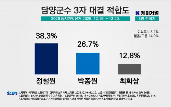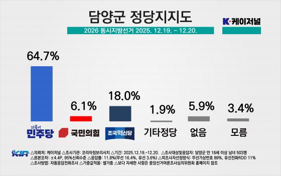 À̹ø Á¶»ç´Â ÄÉÀÌÀú³Î ÀÇ·Ú·Î ÄÚ¸®¾ÆÁ¤º¸¸®¼Ä¡°¡ 2025³â 12¿ù 19~20ÀÏ ´ã¾ç±º °ÅÁÖ ¸¸ 18¼¼ ÀÌ»ó ³²³à 503¸íÀ» ´ë»óÀ¸·Î ½Ç½ÃÇßÀ¸¸ç, ¹«¼± ARS 89%, À¯¼± ARS 11% ¹æ½ÄÀ¸·Î ÁøÇàµÆ´Ù. Ç¥º»¿ÀÂ÷´Â 95% ½Å·Ú¼öÁØ¿¡¼ ¡¾4.4%p´Ù