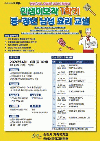 ±³À°Àº ¼øÃµ½Ã ÀλýÀ̸ðÀÛÁö¿ø¼¾ÅÍ¿¡¼ ÁøÇàµÇ¸ç, ¿À´Â 4¿ù 1ÀϺÎÅÍ 6¿ù 10ÀϱîÁö ¾à 3°³¿ù°£ ÃÑ 10ȸ °úÁ¤À¸·Î ¿î¿µµÉ ¿¹Á¤ÀÌ´Ù.