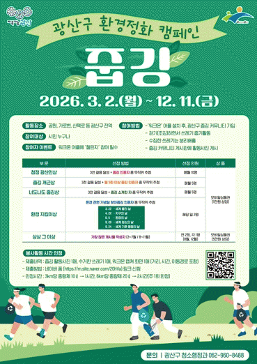 À̹ø Ȱµ¿Àº 12¿ù±îÁö ±¤»ê±¸ Àü¿ª¿¡¼ Âü¿©ÇÒ ¼ö ÀÖÀ¸¸ç, Èñ¸ÁÀÚ´Â ±¤»ê±¸ °È±â ¾ÛÀÎ ¡®¿öÅ©¿Â¡¯ ¼³Ä¡ ÈÄ ¡®±¤»ê±¸ Áݱë Ä¿¹Â´ÏƼ¡¯¿¡ °¡ÀÔÇØ¼ Áݱë Ȱµ¿»çÁøÀ» ¿Ã¸®¸é µÈ´Ù.
