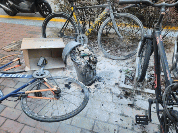 ³ªÁÖ¼Ò¹æ¼ µû¸£¸é À̳¯ ¿ÀÈÄ 4½Ã°æ ¡°¾²·¹±âÅë¿¡¼ ºÒÀÌ ³µ´Ù¡±´Â ½Å°í°¡ Á¢¼öµÅ ÇöÀå¿¡ Ã⵿Çß´Ù. ÇöÀå È®ÀÎ °á°ú ¾²·¹±âÅë ³»ºÎ¿¡ ¹ö·ÁÁø ´ã¹è²ÇÃÊ·Î ÀÎÇØ ÈÀç°¡ ¹ß»ýÇÑ °ÍÀ¸·Î ÃßÁ¤µÇ¸ç ÀÌ ºÒ·Î ¾²·¹±âÅë°ú Àαٿ¡ ¼¼¿öÁ® ÀÖ´ø ÀÚÀü°Å ÀϺΰ¡ ¼Ò½ÇµÆ´Ù.