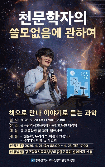 ±¤ÁÖâÀÇÀ¶ÇÕ±³À°¿ø Áø¿µ ¿øÀåÀº ¡°Áö¿õ¹è ±³¼ö¿ÍÀÇ ¸¸³²ÀÌ ÇлýµéÀÌ ¿ìÁÖ¿¡ ´ëÇÑ È£±â½ÉÀ» ÇØ¼ÒÇÏ°í °úÇÐÀû ¼Ò¾çÀ» ³ÐÈ÷´Â °è±â°¡ µÇ±æ ¹Ù¶õ´Ù¡±¸ç ¡°Ãµ¹®ÇÐÀÇ °¡Ä¡¸¦ ³ª´©´Â À̹ø Ư°¿¡ ¸¹Àº Çлý°ú ±³¿øÀÇ °ü½É°ú Âü¿©¸¦ ¹Ù¶õ´Ù¡±°í ¸»Çß´Ù.